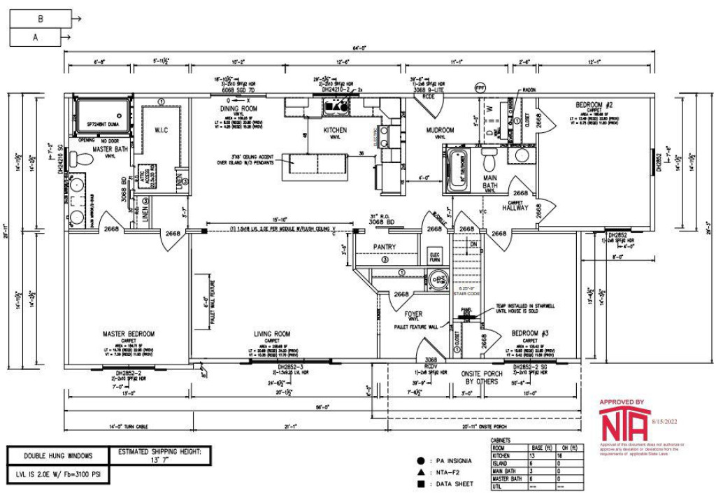 Farmhouse, 30 x 56, 1676 Sq. Ft., 3 Bedroom, 2 Bath.