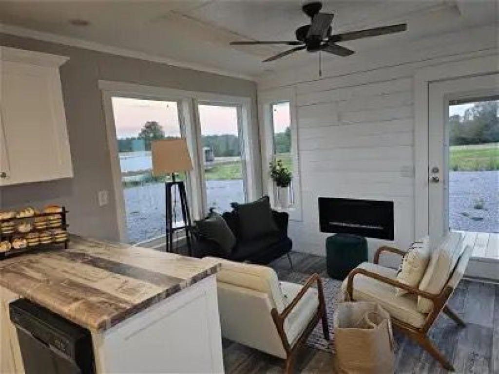 As you approach,you will immediately notice the abundance of glass. From our full Glass Front Door with internal shade, to the full glass walls letting the outside in, you will have an abundance of your surroundings! Turn on the electric fireplace inset into your Rustic Shiplap wall and turn on a good movie on your wall mounted tv, or cuddle up with a good book and enjoy serenity. Dual Zone Mini Splits will keep you toasty warm, or Nice and Cool no matter what the situation outside. Storage Abounds in your Kitchen area equipped with fine finish soft close drawers and doors & Whirlpool Appliances. Your floor to ceiling pantry is sure to be a hit for storing all your needed food items! Step into your bath with space saving pocket door privacy, and take a needed hot shower with a never ending supply of hot water due to the Rheem instant hot water heater. Porcelain Sink, and Full Size Elongated Toilets come standard. Start your load of laundry with your stacked washer/dryer, and get ready for bed with room for a queen or king bed depending on night stand size! Floor space in not compromised in your Vista due to the space saving custom built in closet set up!
