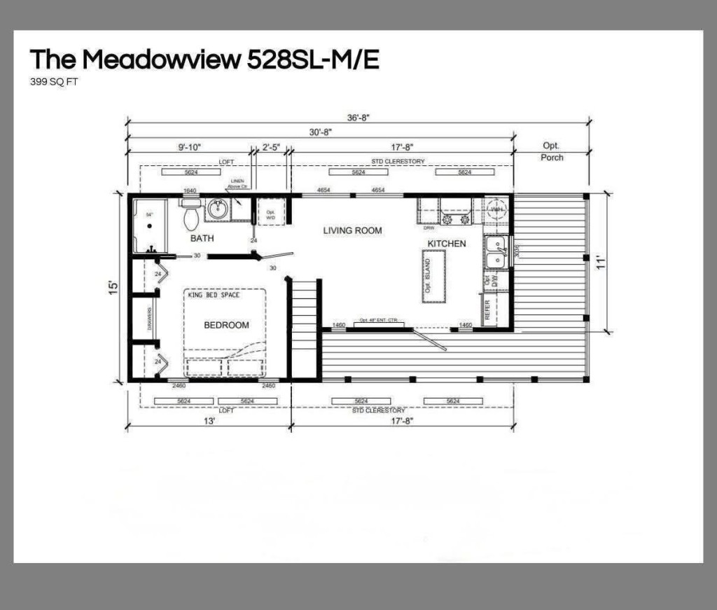 399 sq foot 1 bed/1 bath, loft & drawers in the stairs for extra storage!