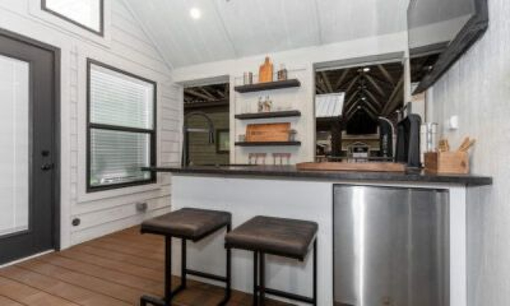 The Tannehill by Clayton is all about bringing outdoor adventure in and the indoor amenities out. The windows in the bedroom bring in plenty of natural light and outdoor scenery while the porch features an outdoor kitchen with a sink, bar, and plenty of countertop space.